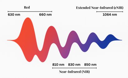 Uses 630, 660, 810, 830, 850, and 1064 nm. Each wavelength is selected for proven effectiveness in human trials and targets specific tissue layers for measurable results.